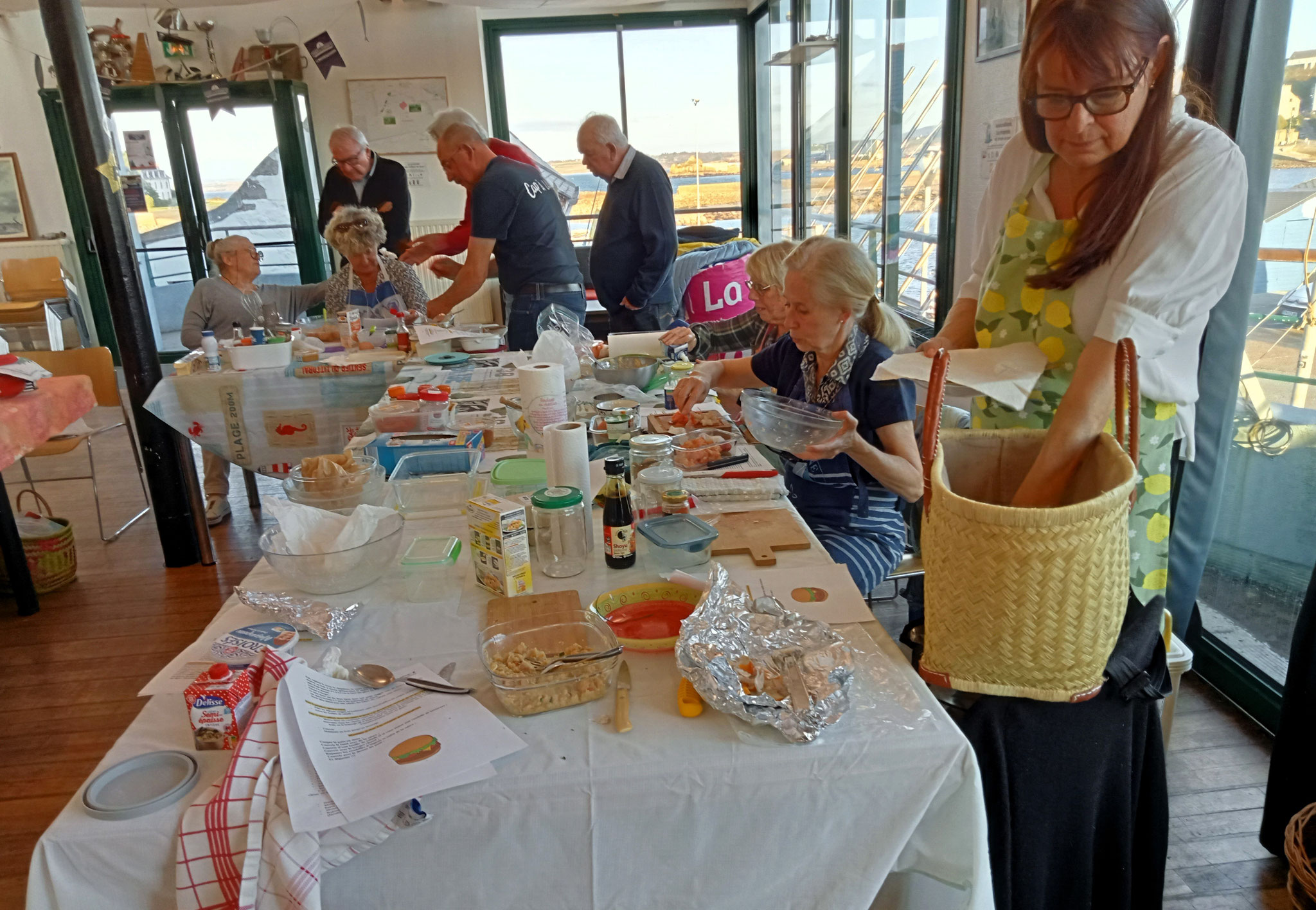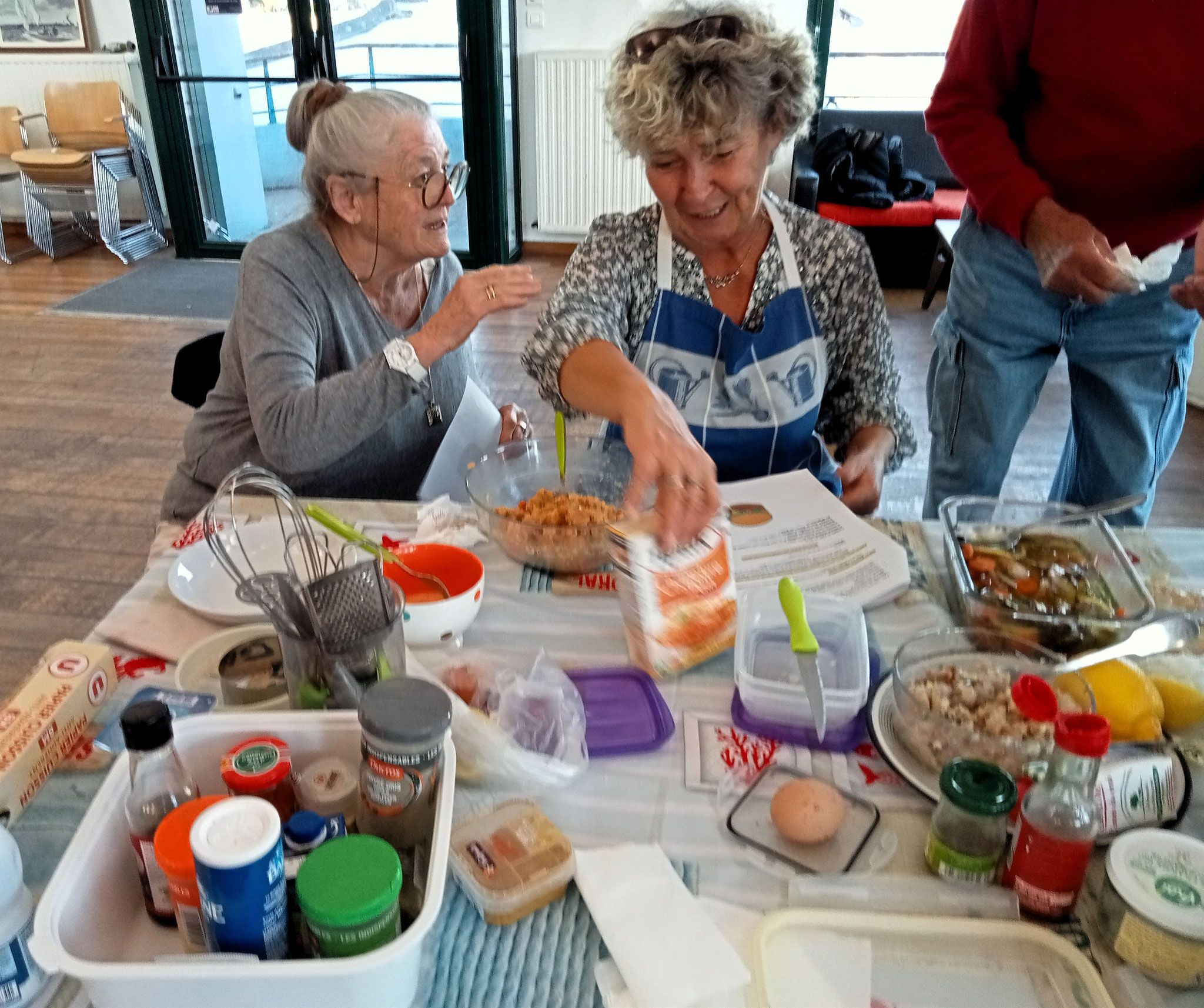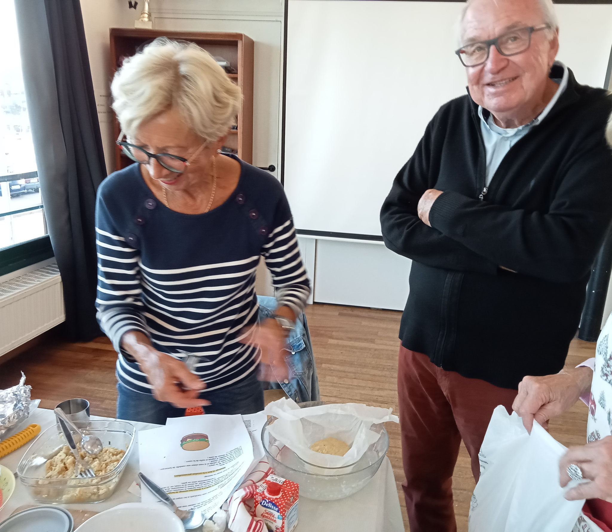 En 1 heure 30, les 12 membres inscrits à l’atelier ont réussi à confectionner de délicieux buns (les pains de forme ronde), la galette de poisson OGM (Ovipare Généreusement Malaxé), la sauce et les garnitures. Un sacré programme pour une reprise des activités. Martine, l’animatrice du jour, avait prévenu les participant(e)s et leur avait demandé d’être à l’heure afin de réussir ce challenge. Défi relevé, à charge tout de même d’effectuer les cuissons et le montage du burger à la maison.