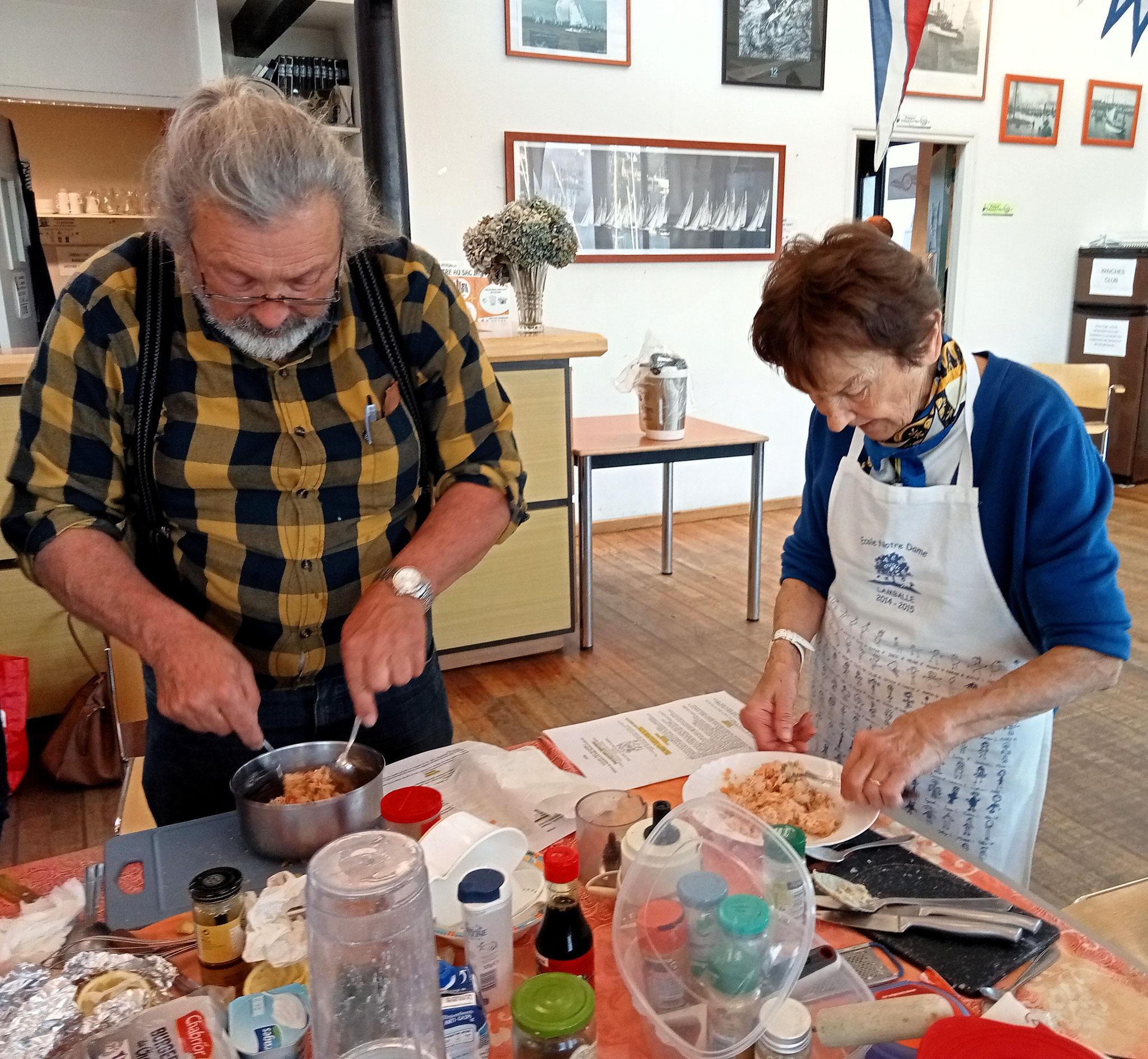 En fin de séance, Marylène et Jacques ont offert l’apéritif à l’occasion de leurs anniversaires respectifs. Un fort bon moment de retrouvailles partagées autour du soleil feuilleté et des bouchons iodés confectionnés par Marylène et des acras, la délicieuse spécialité de Joe et Marc.
